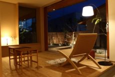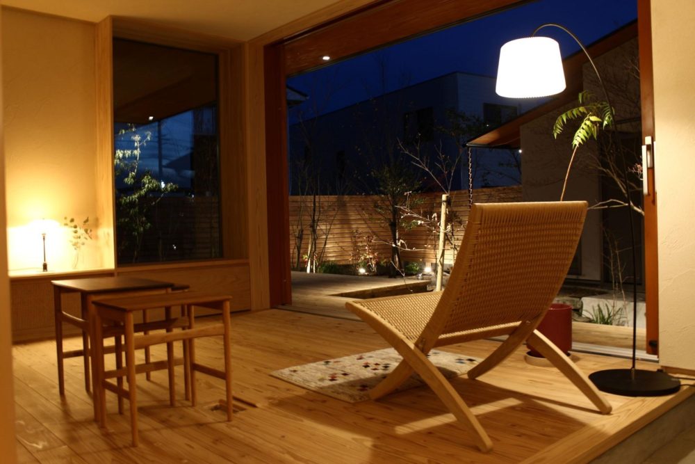 椅子に腰かけた時に見える、照明に照らされたお庭の緑を見たときの気持ちの安らぎ。