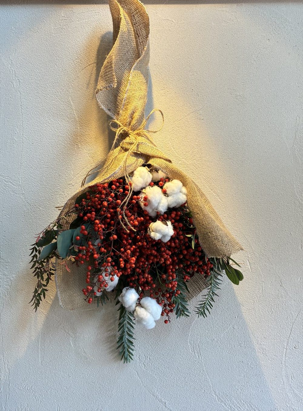 花や植物の枝葉などを束ねてつくったインテリアアイテムです。